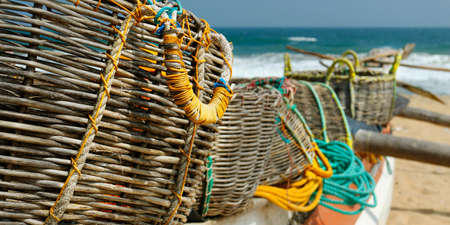 detail of fisherman boat with net and basket