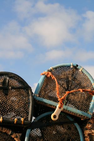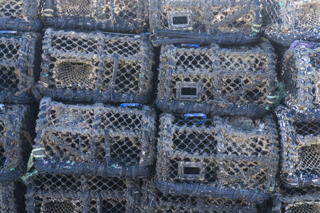 Lobster crab pots stacked on each other
