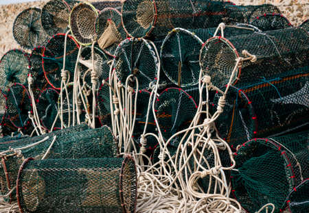 Tackles and traps of fishermen for catching shellfish and fish. In the town of Alvor Algarve.