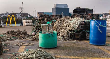 Artisanal fishing equipment in the small trading port of Howth, fishing village near Dublin, Ireland