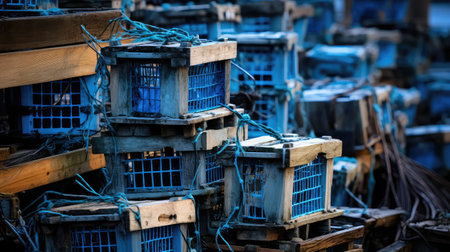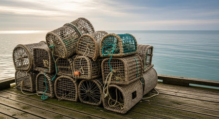 Drying Lobster Traps by the Seashore: A Captivating Sight --ar 3:2
