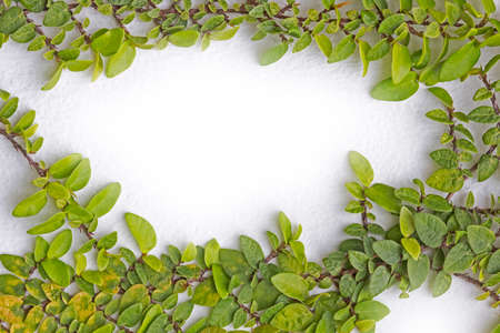 White wall background texture with leave as frame.