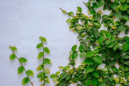 The Green Creeper Plant on a White Wall Creates a Beautiful