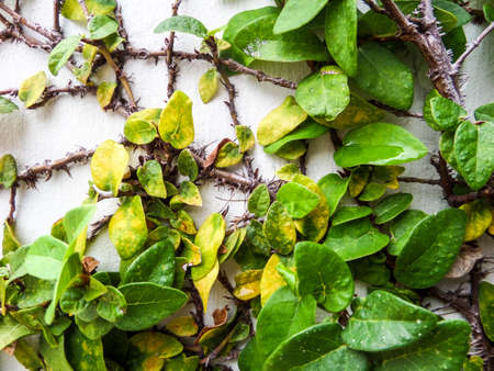 Green leaf border, Isolate of plant on the wall in garden