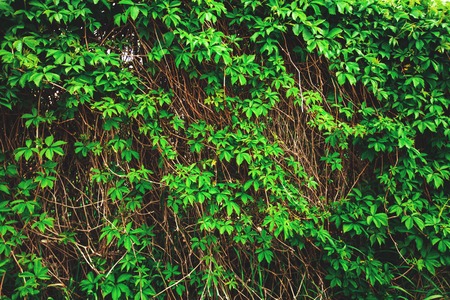 Green dense foliage on a wall as a background