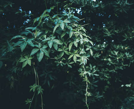 Green leaves background.Green leaves color tone dark in the morning.Tropical Plant in Thailand,environment,good air,fresh.photo concept nature and plant.