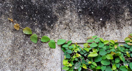 Green concrete wall with green leaves plants