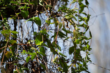 Evergreen leaves and new sprouts of climbing ivy