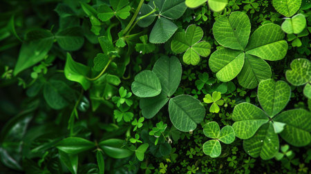 Close-up of lush shamrock foliage, vibrant green leaves
