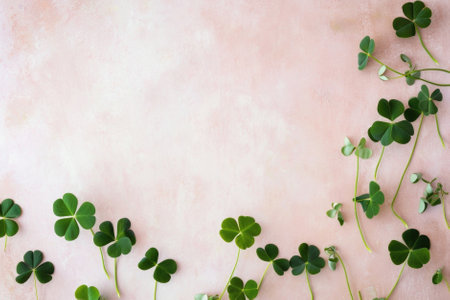 Green shamrocks border on beige background. Perfect for St. Patrick's Day.