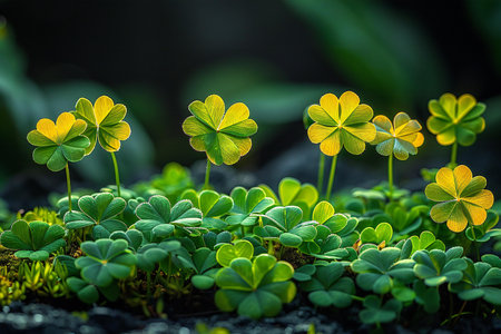 Green clovers contrasting with a black background.