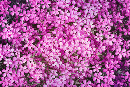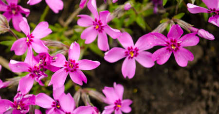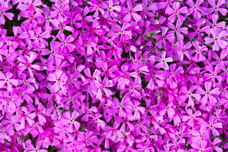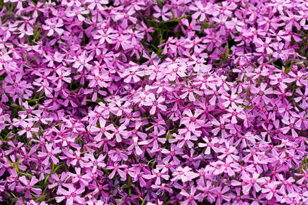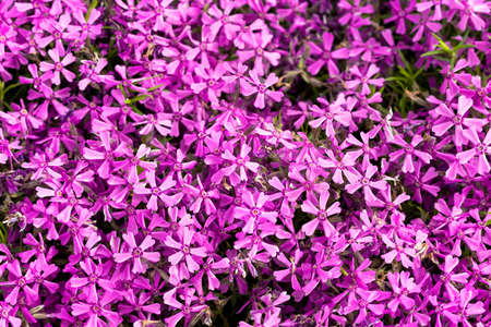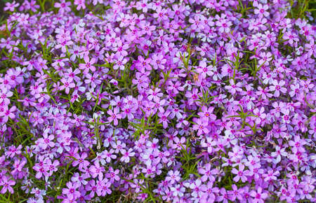 Purple phlox subulata. Floral background with subulata flowers. purple floral pattern. top view
