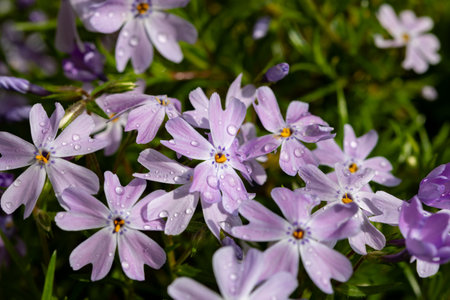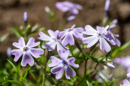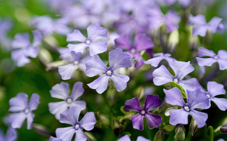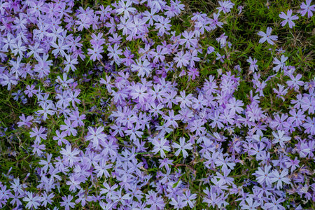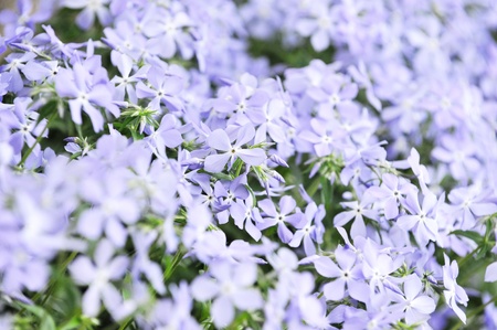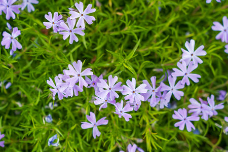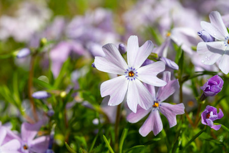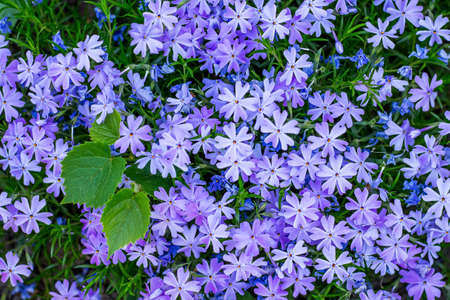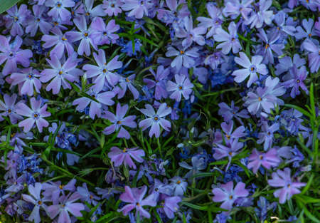 Creeping phlox (Phlox subulata), also known as the moss phlox. Blue flowering plant, beautiful background for a postcard.