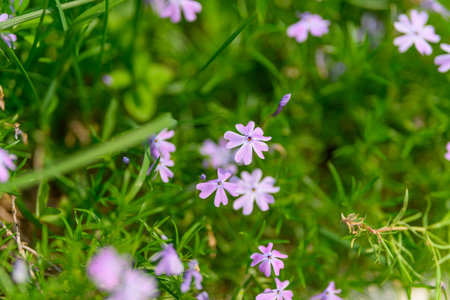 Macro photo nature lilac wild Phlox subulata flower. Texture background blooming Phlox subulata wildflower. The image of a plant blooming lilac purple