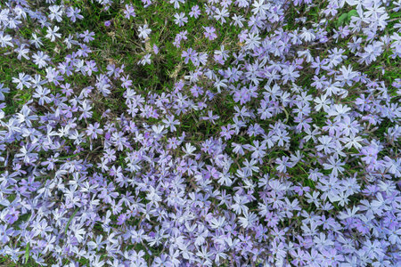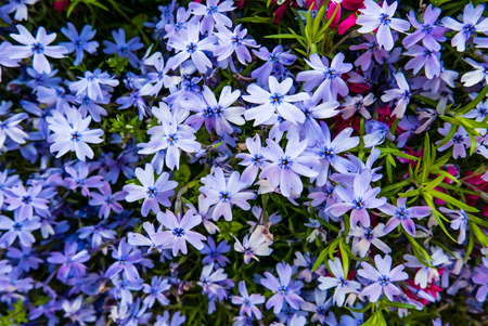 Spring blossom of mountain emerald blue creeping phlox subulata in garden close up