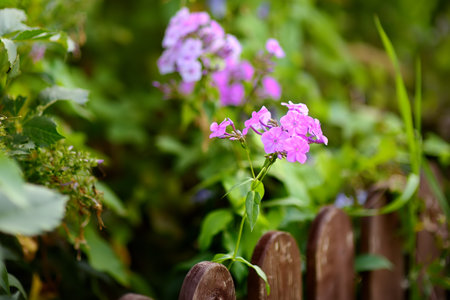 Beautiful purple phlox on bed in the garden. Phlox (Phlox paniculata) are vivid summer and autumn flowers
