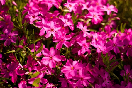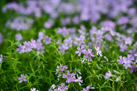 purple phlox subulata. small flowers bloom in late spring and early summer.