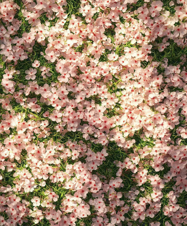 Aerial View of Moss Phlox Blooming Carpet, Vivid Pink Spring Flowers