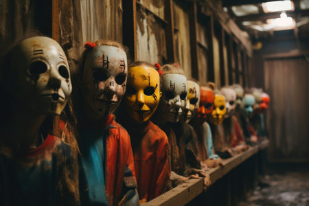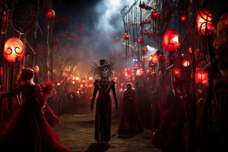 Spooky Halloween celebration, where eerie figures in evil costumes roam through a dimly lit haunted house.