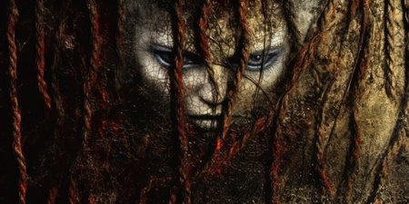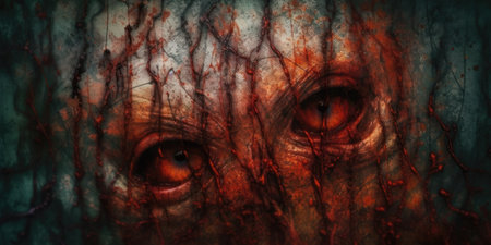 Ghoulish and eerie masculine creature with gouged eyes that resemble a skull