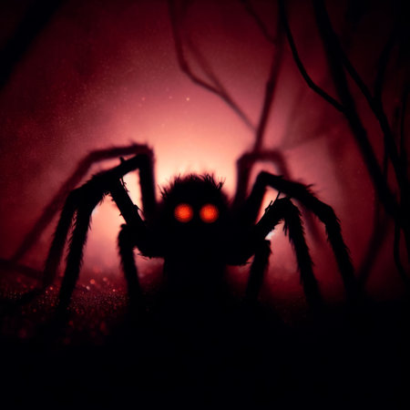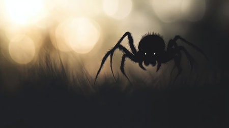 Terrifying Cartoonish Spider Silhouette in Mist