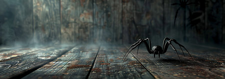 Wooden floor with spider background, Happy Halloween - Ai Generated