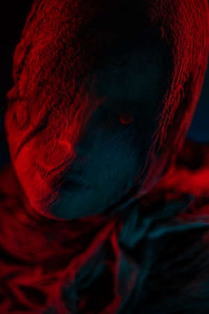 Closeup portrait. Face with veil in shadow