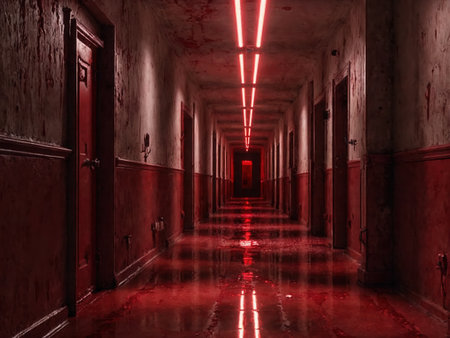 A dark hallway in an abandoned hospital, dark and eerie, with a faint red hue on the walls. --ar 3:2 --stylize 750 --v 6.1 Job ID: 360799cf-e984-498c-904a-165c78956320
