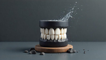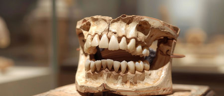 Realistic model of human teeth in jaw, showcasing dental anatomy for educational purposes in art, science, dental study, and healthcare training environments