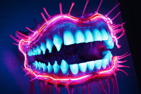 Jaw with neon effect. Insertion jaw. Dentist services. Implants.