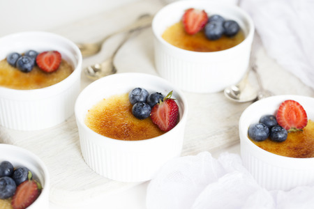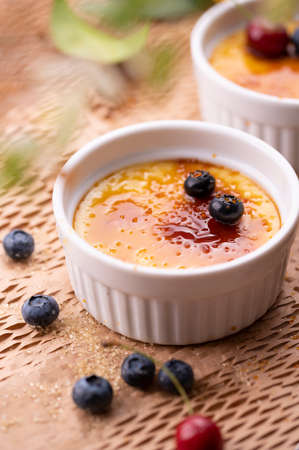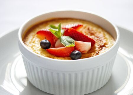 Creme brulee. Traditional French vanilla cream dessert with fruit