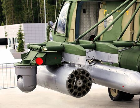 Russian military equipment. Regular heavy machine gun on the helicopter interceptor.
