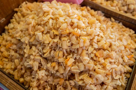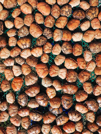 heap of dried scallop at the traditional market at Taiwan