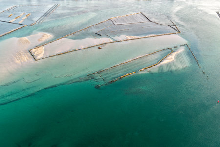 Production of oysters in Etang de Diane, the east coast of Corsica, France, Europe