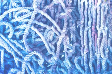 Colorful texture of the old marine ropes. Close-up, copy space