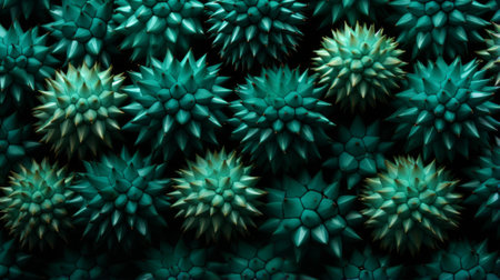 A mesmerizing display of vibrant green spiky balls, resembling a group of sea anemones swaying in a colorful reef filled with lush plant life