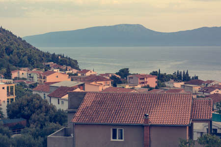 Stock photo of aerial view of the coastline of the village of Dubrovnik, Croatia, Travel concept