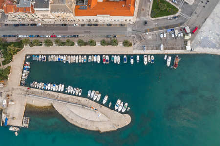 Aerial overhead view of marina port in Split old town in morning in Croatia Dalmatia