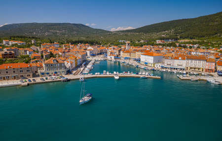 Cres old town port Croatia aerial view
