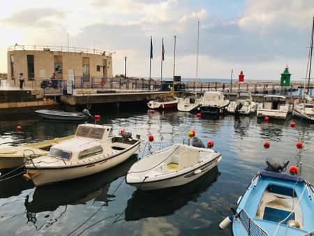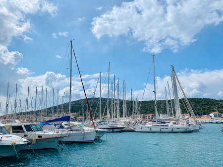 Boats in seaside marina, Croatian town of Crikvenica, selective focus