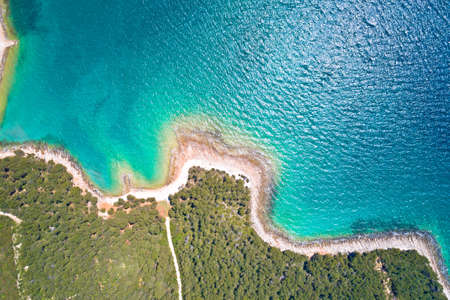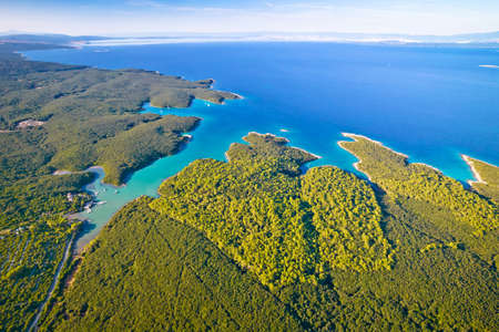 Punta Kriza coastline on Cres island aerial view, Kvarner bay archipelago of Croatia