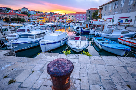 Cres. Colorful harbor and waterfront in town of Cres, Island of Cres, Adriatic archipelago of Croatia