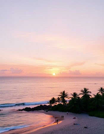 Beautiful sunset on a tropical beach with palm trees in Sri Lanka
