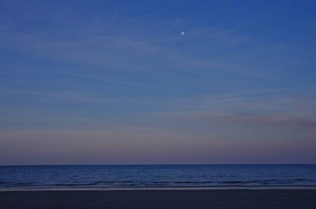 Sunset over the sea with the moon in the sky. Abstract background.