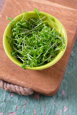 Watercress cress salad green sprouts top view
