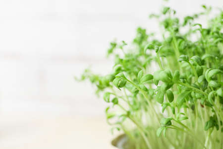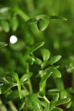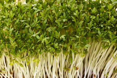 Closeup of fresh young garden cress sprouts