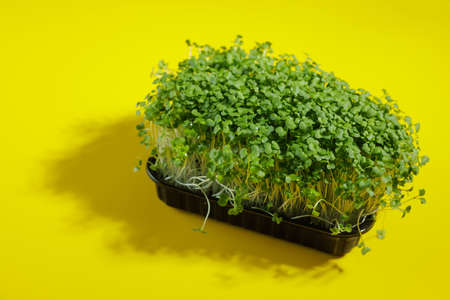 microgreens on a clean yellow background, close-up