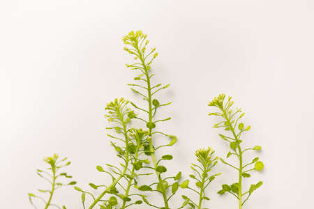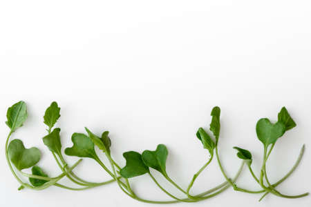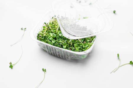 Fresh microgreens. growing cressalate on a white background. Healthy eating