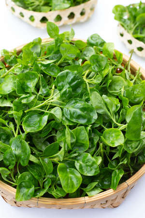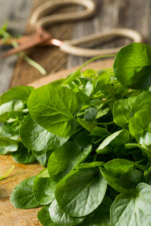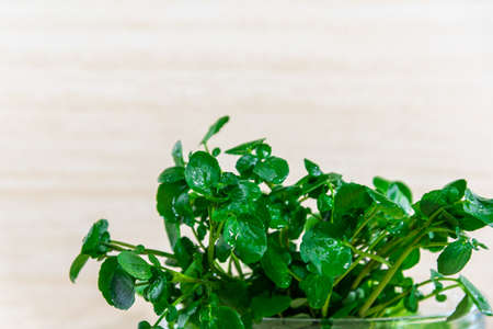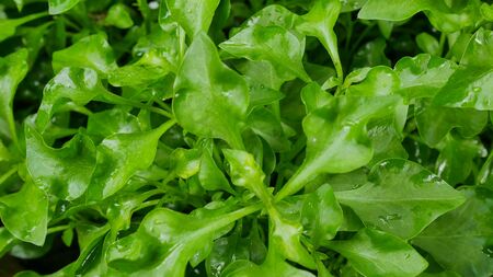 Fresh watercress salad, Watercress growing in the vegetable garden plant green leaf background.