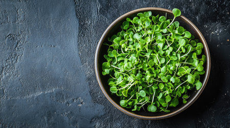 Nutrient-rich young sunflower sprouts in a bowl, ideal for promoting healthy food with plenty of space for copy or ads.